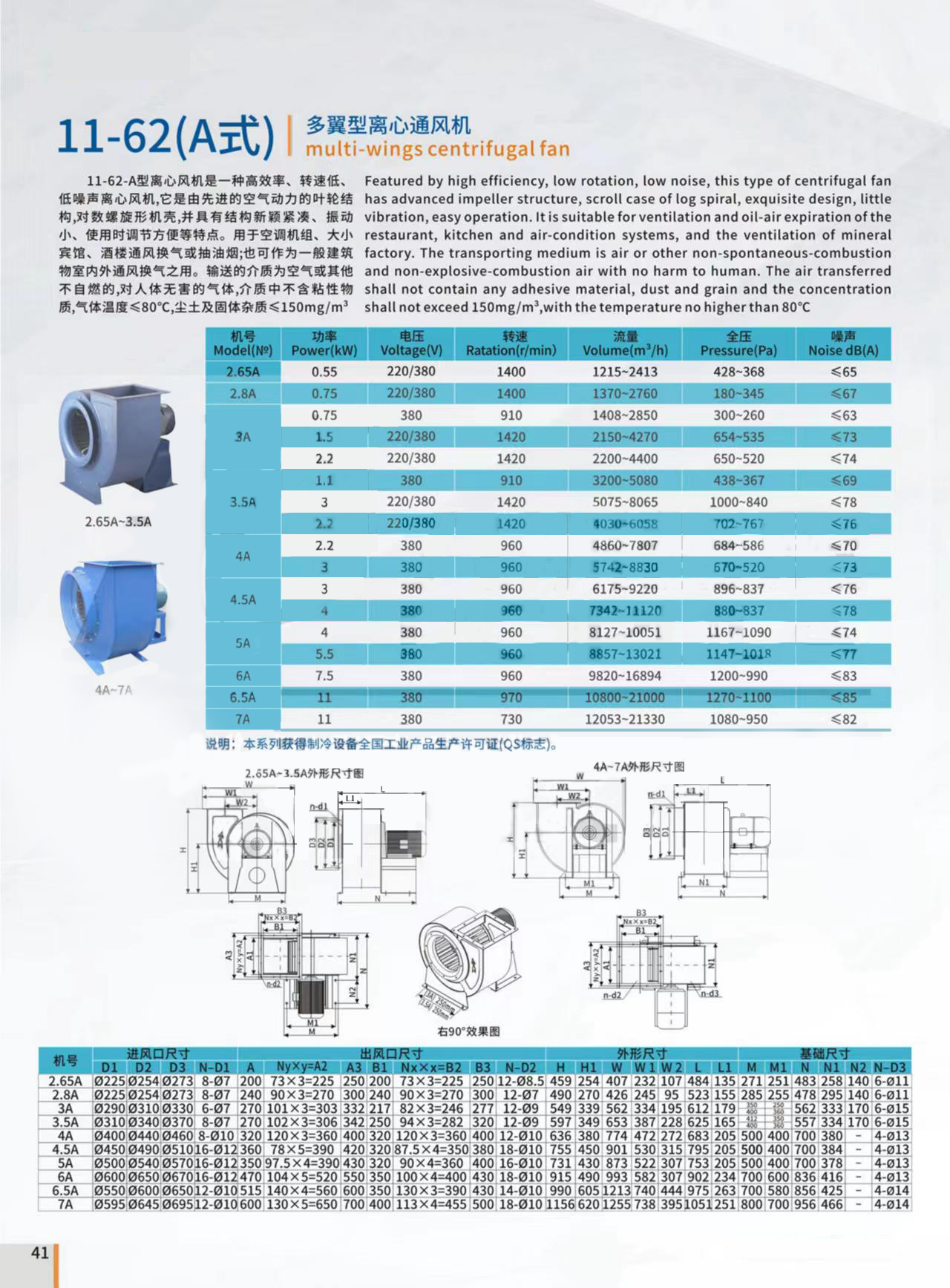 • 11-62(A式)2.65A-3.5A多翼离心通风机